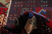 Propracovaná technika tkaní se speciálními umělecky vázanými uzly tvoří řady vlasu koberce tím, že se prostřihne každý jednotlivý uzel, nebo celá řada uzlů. Ruční vázání koberců vyžaduje čas a umožňuje vytvářet také složité vzory.